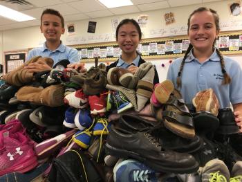 Students in pre-kindergarten through eighth grade have been collecting gently used shoes for the past two years, more than 2,500 pairs in all. If laid end-to-end, that’s enough shoes to stretch the length of 116 school buses.