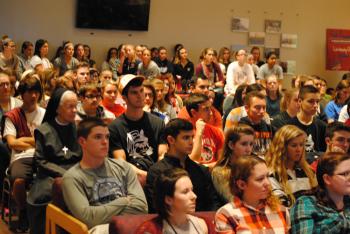 More than 100 students joined Bishop Barres praying a decade of the rosary before engaging in the informal discussion focusing on building friendships in the context of the faith.