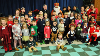 His young audience listened attentively until the end of the story, but heads turned quickly when the Bishop’s exclamation of “Oh, my goodness!” signaled the entrance of a very special guest: St. Nicholas himself.